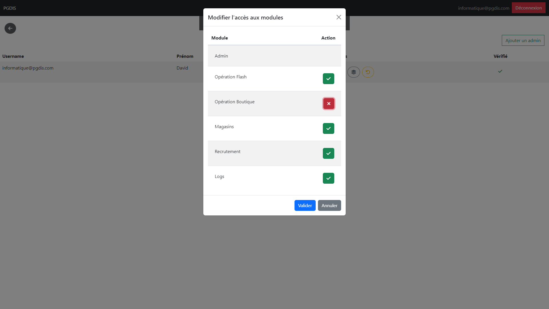 - Module Logs : enregistrement détaillé des actions utilisateurs pour assurer une traçabilité complète.